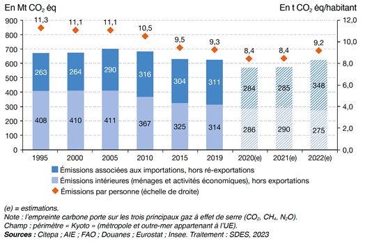 - 27/11/2025 Émissions de gaz à effet de serre et empreinte carbone de la France en 2024 : une baisse plus faible qu’en 2023. Insee. Octobre 2025.