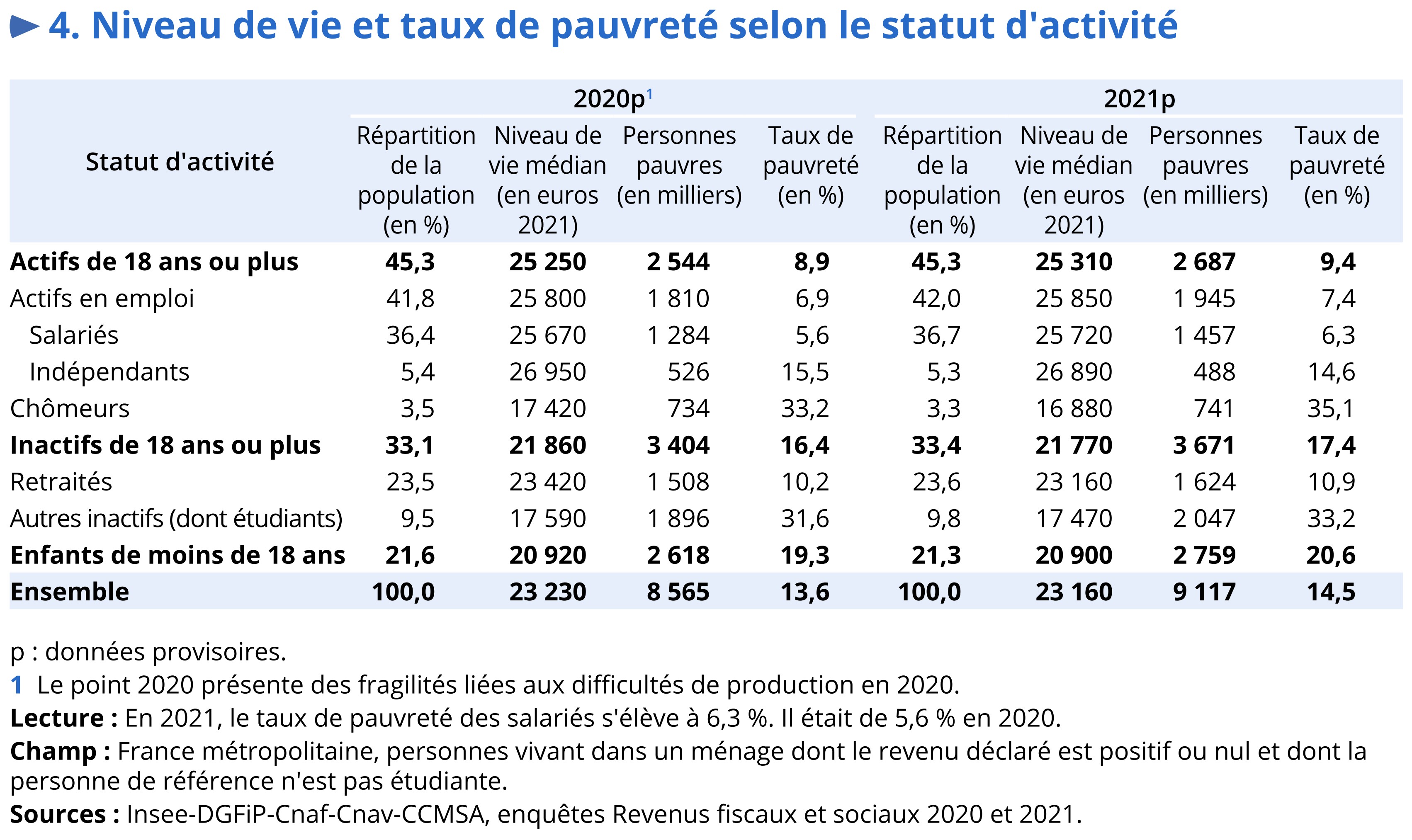 - Le taux de pauvreté augmente et dépasse son niveau de 2019
