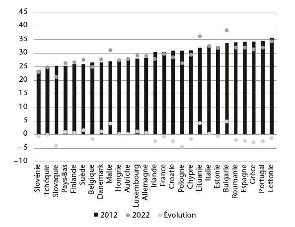 Graphique 1. Évolution des inégalités de niveaux de vie au sein de l'UE27 (2012‑2022)