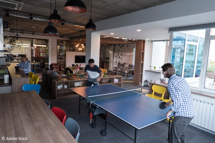 C'est en outre au sein des start-up qu'est née l'idée de créer des fonctions dédiées au bien-être du personnel, appelées « chief happiness manager » ou « office managers ». Ces personnes sont alors chargées de la décoration et de l'agencement des bureaux, afin d'en faire un lieu décloisonné, convivial et agréable. Elles sont également responsables de l'animation de la vie au travail de l'équipe salariée, par la mise en place de cours de sport (yoga, boxe, relaxation) ou l'organisation régulière de soirées d'entreprise. Dans ces entreprises, une véritable vie sociale rythme le quotidien du travail, venant entremêler le plaisir au travail.