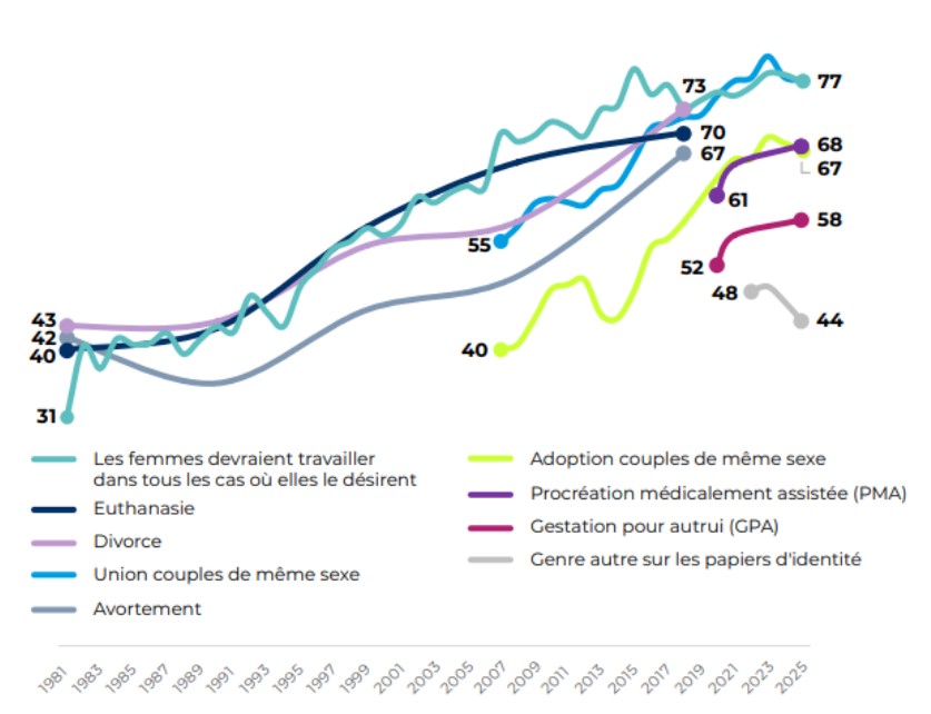 - Des avis moins tranchés aujourd'hui qu'hier sur les questions sociétales