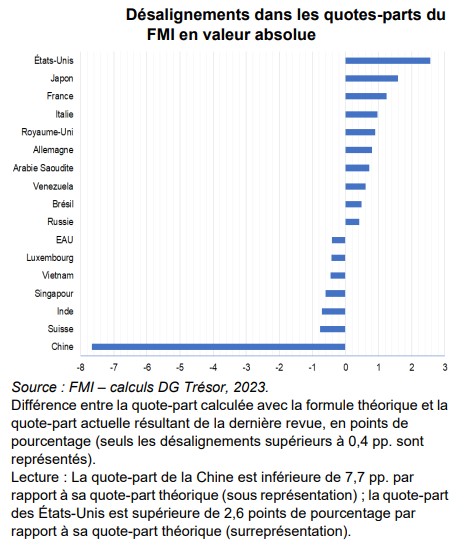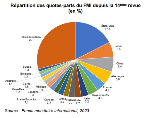 Dans ce contexte, la question d'une réforme de la gouvernance du Fonds reste d'actualité. Elle se cristallise sur les moyens de réaligner le niveau et la répartition des quotes-parts avec la taille de l'économie mondiale et l'importance relative des pays membres. Suite à l'engagement des membres en octobre 2023, des options doivent être formulées par le Conseil d'administration du FMI d'ici juin 2025, dans le cadre de la 17ème revue des quotes-parts, y compris en envisageant un changement de la formule théorique de répartition des quotes-parts.