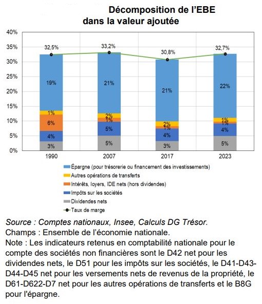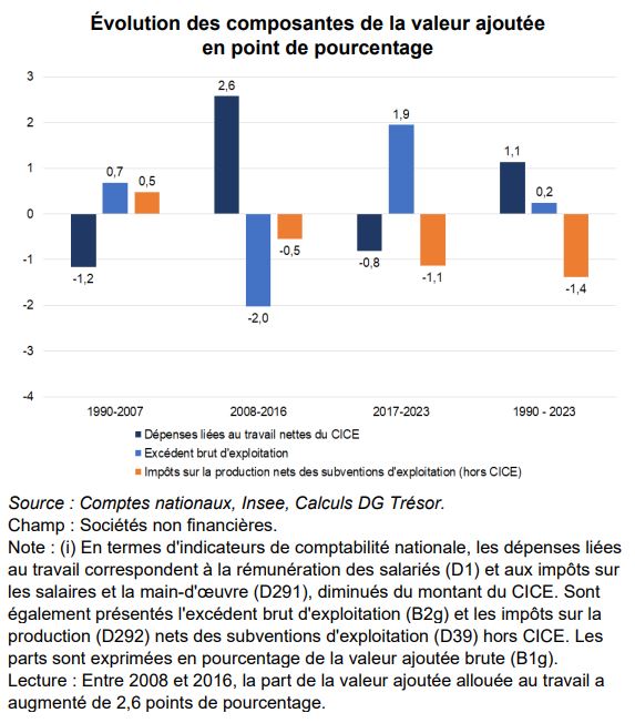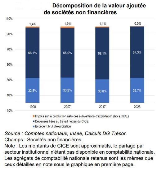 Le partage de la richesse produite en France entre le travail et le capital. Direction Générale du Trésor. Mai 2025.