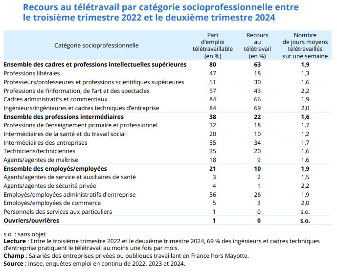 - Une forte proportion de cadres au sein de l'entreprise stimule le télétravail des autres salariés