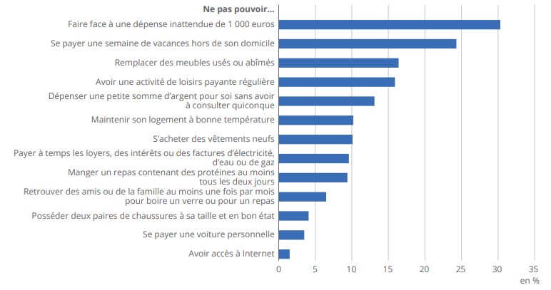 Figure 2 : Part de personnes déclarant subir une privation pour raisons financières en 2022.